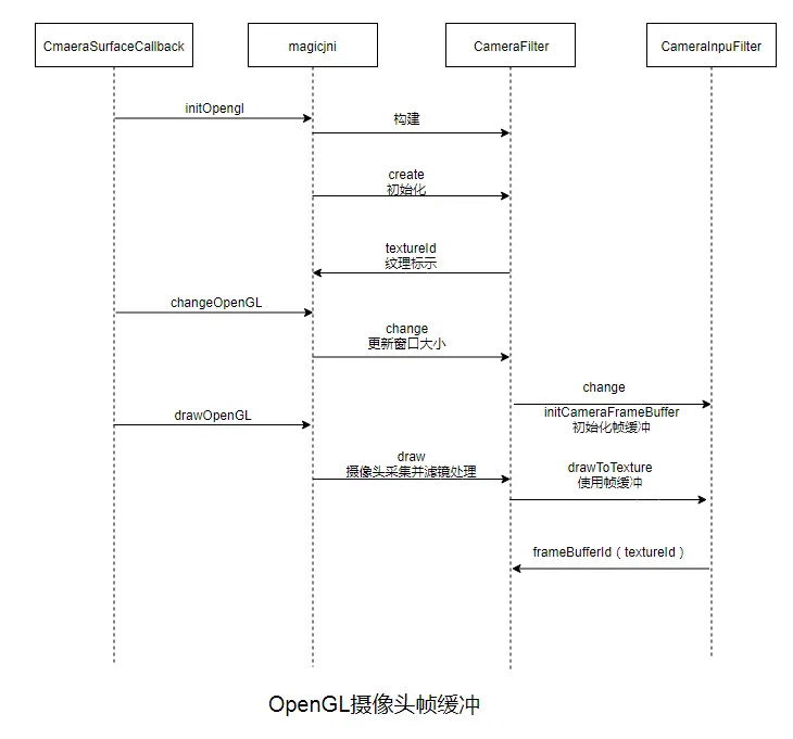 画帧图,并回调帧缓冲纹理id。这里帧图使用的是GL_TEXTURE_2D,但是采集图像的时候需要使用GL_TEXTURE_EXTERNAL_OES。