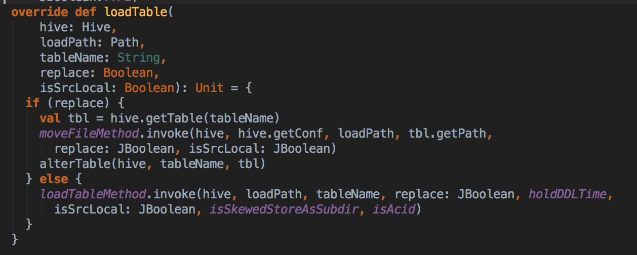之前谈到,STS 只有一个进程去处理所有提交 SQL 的编译,所有的 SQL Job 共享一个 Hive 实例,更糟糕的是这个 Hive 实例还有处理 loadTable/loadPartition 这样的 IO 操作,会阻塞其他任务的编译,存在单点问题。我们之前测试一个上万 partition 的 Hive 表在执行 loadTable 操作时,会阻塞其他任务提交,时间长达小时级别。对于 loadTable 这样的IO操作,要么不加锁,要么减少加锁的时间。我们选择的是后者,首先采用的是社区 SPARK-20187 的做法,将 loadTable 实现由 copyFile 的方式改为 moveFile,见下图: