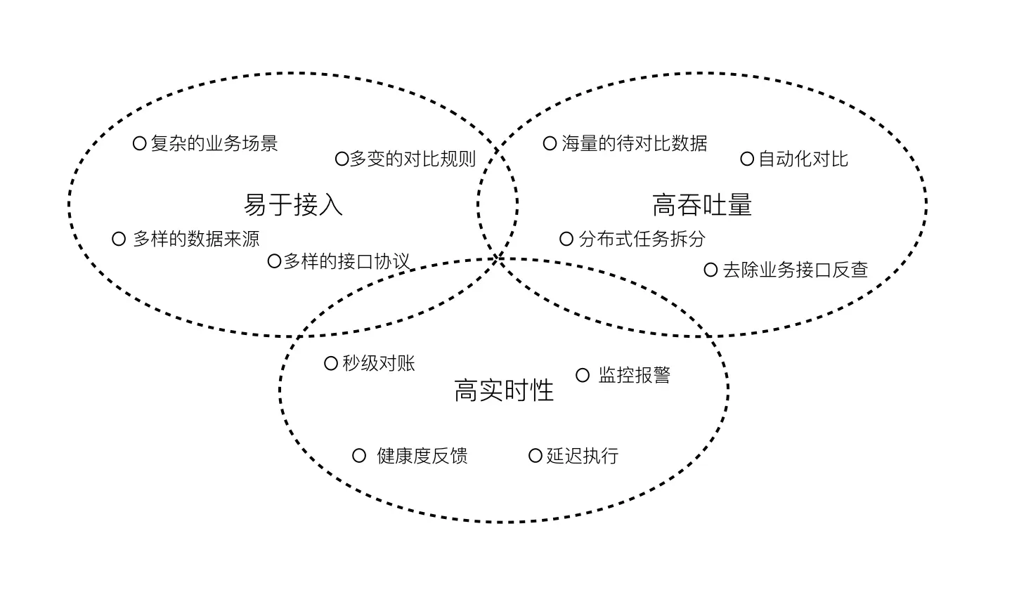 我们对于一个业务对账平台的核心诉求,主要包括要方便业务系统快速接入,要能处理业务方海量的数据,并保证一定的实时性。这会深刻影响业务对账平台的系统设计。