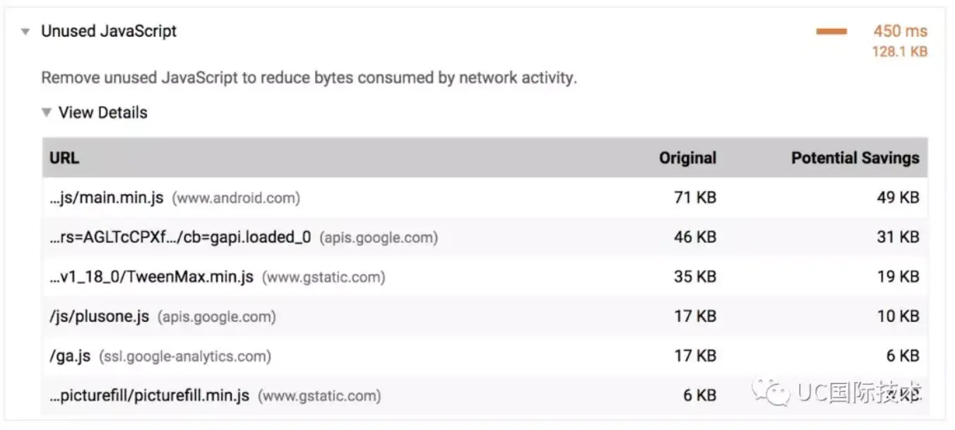 通过 Lighthouse 的 Node CLI 为其指定一份完整的配置,便可以使用“Unused JavaScript(未使用的 JavaScript)”审查来追踪应用传输了多少未使用的代码。
