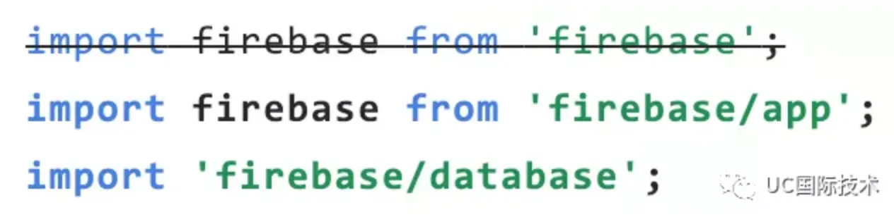 在上面的树形图中, @firebase 域中有相当多的包。 如果你只需要 firebase 数据库组件,请将导入语句改为仅获取该文件: