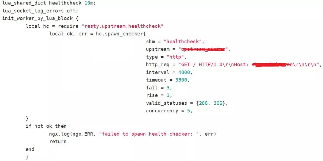 在后续改进中,我们通过升级Nginx,采用openresty+lua方式来对后端服务器进行健康监测,以动态更新upstream中的server,可以快速摘除异常的后端服务器,达到快速止损的目的:
