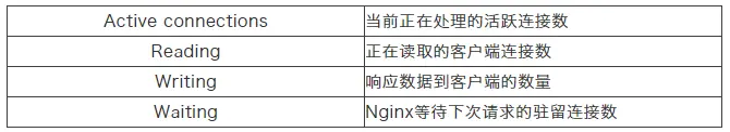 因我们更关心当前Nginx运行情况,不对已处理的请求做过多关注,所以我们只对如下指标进行采集监控: