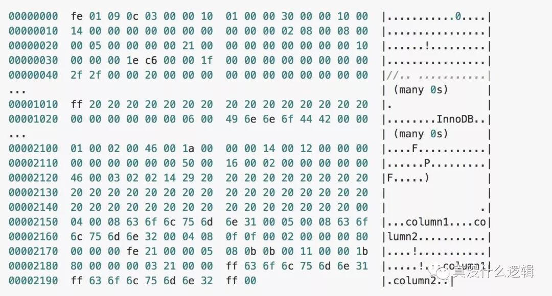 .frm文件格式中的二进制的内容有着非常详细的表述,在这里就不展开介绍了。