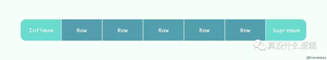 在页的头部和尾部之间就是用户记录和空闲空间了,每一个数据页中都包含 Infimum 和 Supremum 这两个虚拟的记录(可以理解为占位符),Infimum 记录是比该页中任何主键值都要小的值,Supremum 是该页中的最大值: