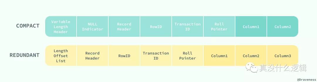 两种行记录格式 Compact 和 Redundant 在磁盘上按照以下方式存储: