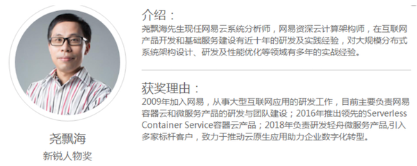 2018年以来,“微服务”受到业界越来越多的关注,也取得了很多发展。其中网易云轻舟微服务因其为企业带来的突出价值和打造了业界最全面的微服务平台,荣获“2018年度中国IT行业创新产品奖”和“2018中国IT风云榜年度优秀产品奖”两项大奖。同时,网易云轻舟微服务背后的两位技术大神——网易云副总经理陈谔、网易资深云计算架构师尧飘海也为更多人所熟知,分别获得由比特网和CIO俱乐部颁发的“2018中国IT风云榜年度领军人物奖”和“2018中国IT风云榜年度新锐人物奖”。