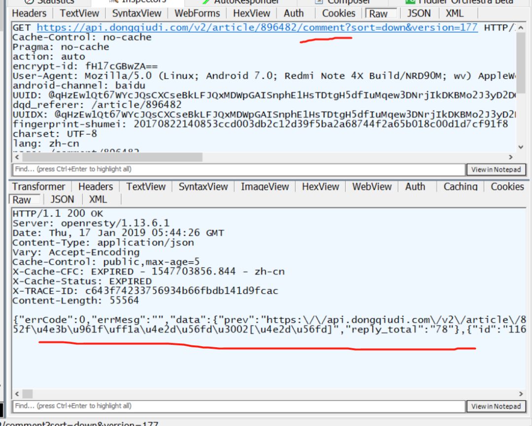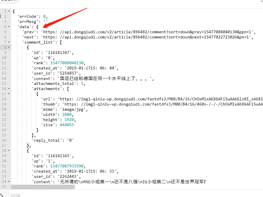 可以看到请求的链接为:https://api.dongqiudi.com/v2/article/896482/comment?sort=down&version=177 ,