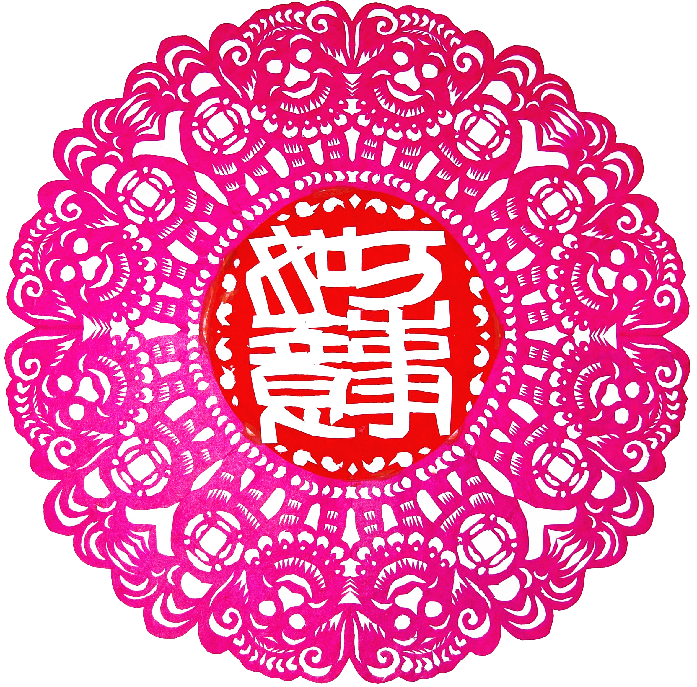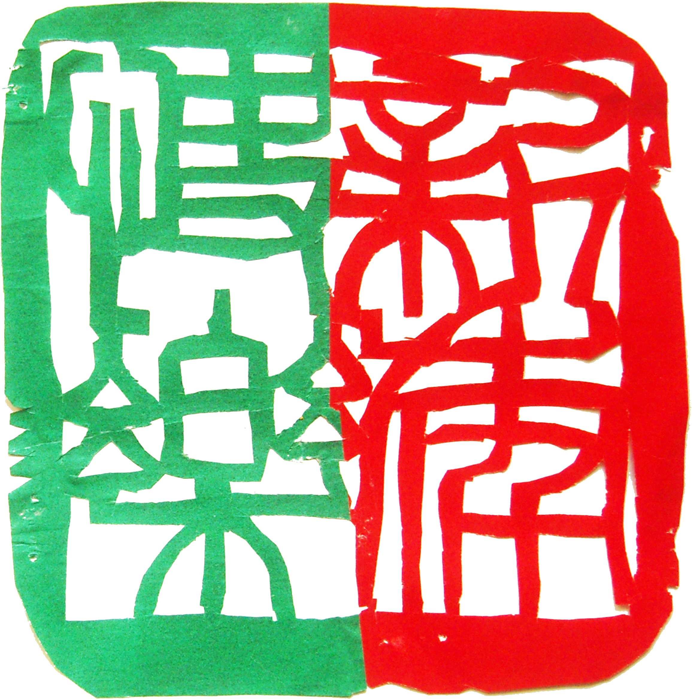 而将篆刻和剪纸结合起来,却是一次偶然的突发奇想。1990年元宵节,我望着灯光下的窗花和书案上篆刻作品突然有了一个想法,能不能把剪纸与篆刻这两种不同形式和风格的艺术进行嫁接组合,形成一种全新的艺术形式,可称作“剪纸篆刻”或“剪纸印”。经过长时间的琢磨,我发现民间剪纸与篆刻艺术的共性特点是色彩单一,都是线条的艺术。剪纸构图单纯,色彩鲜明,富有装饰性和浓郁的民间文化特色;篆刻则讲究书法艺术性、章法和刀法,有金石味。而且比较来看,剪纸的黑白与篆刻的阴阳文布局上基本相通,因此,以剪代刀、以纸替石的构想完全可以成为可能。