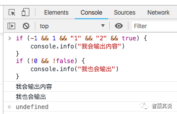 对这段代码存在疑问的同学可以把它复制到浏览器的控制台执行一下,执行结果如下: