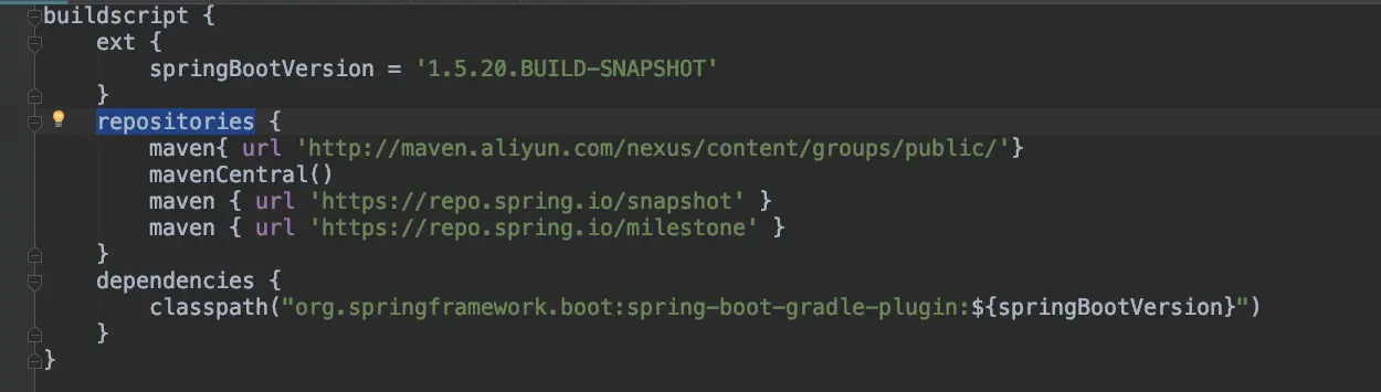 此时两个模块的项目已经创建完了,Gradle下载的Jar包的时候会特别慢,这时候可以在Gradle中将下载源给换了,换成阿里的国内镜像。镜像地址