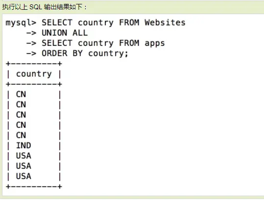 ** 会得出两个表所有country字段的结果