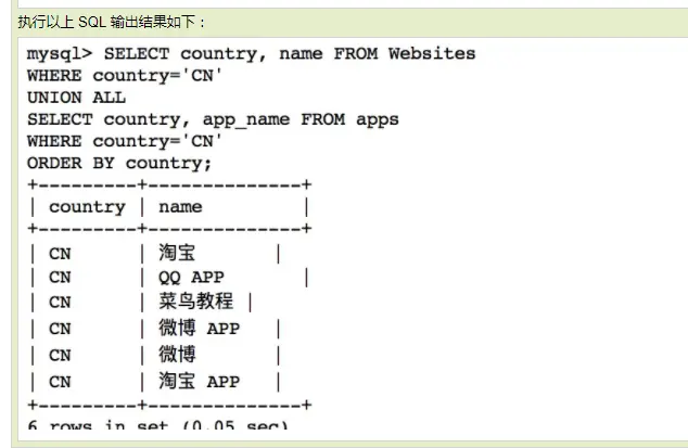 参考:http://www.runoob.com/mysql/mysql-union-operation.html