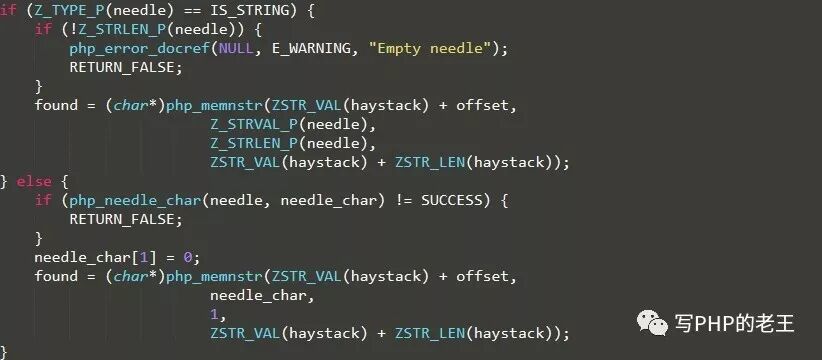strpos里的代码还是比较简单,读起来也不费劲。