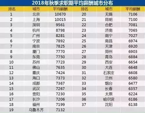 比较下2018年秋季求职平均薪酬
