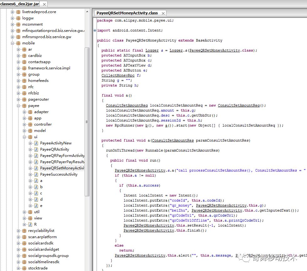 XposedHelpers.findAndHookMethod("com.alipay.mobile.payee.ui.PayeeQRSetMoneyActivity", lpparam.classLoader, "a", XposedHelpers.findClass("com.alipay.transferprod.rpc.result.ConsultSetAmountRes", lpparam.classLoader), new XC_MethodHook() {
