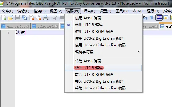 notepad++写入内容,转码