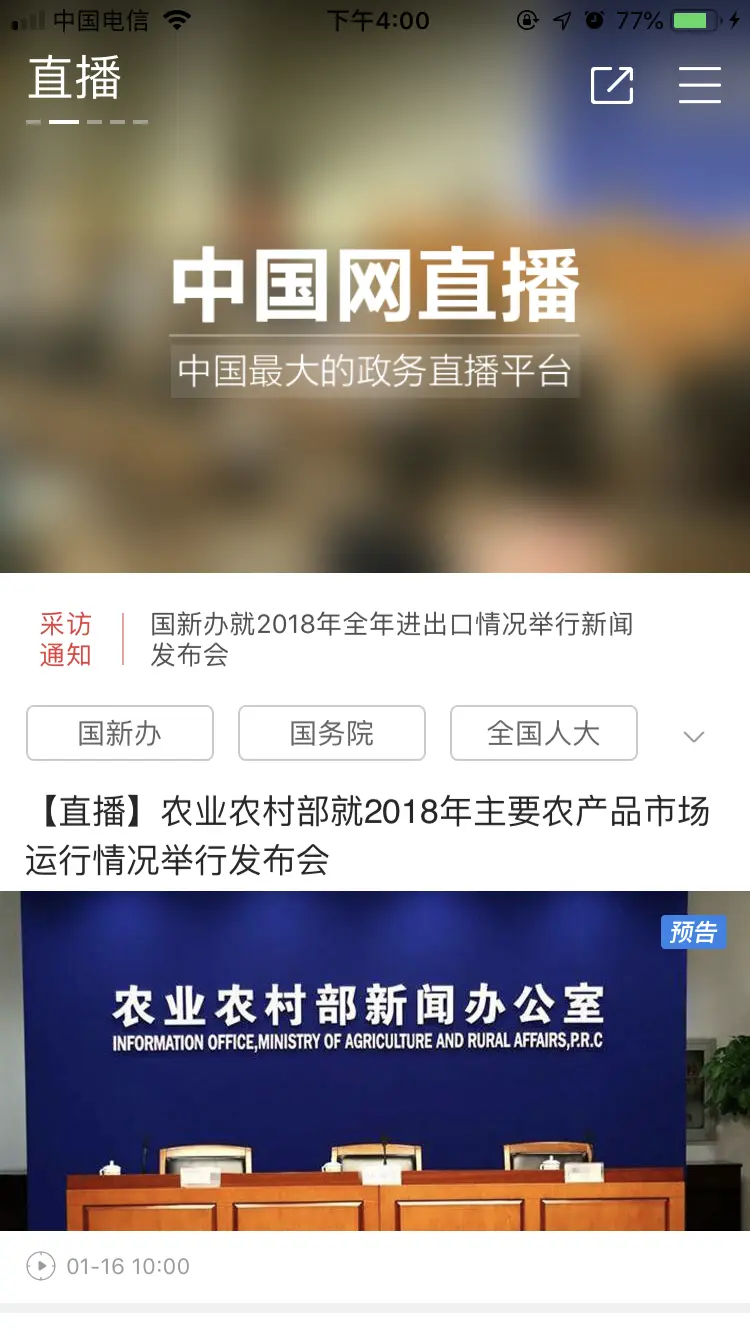 新闻传播不限于以图配文的传统稿件形式,在直播风口上,将重大新闻事件以视频形式实时直播,从而做到更高效快速地触达更多人群,让用户真正所见即所得。中国网在 2016 年,借力七牛云提供的直播云服务,成为中国最大的政务直播平台。