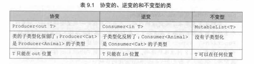 in关键字的意思是:对应类型的值是传递进来给这个类的方法,并且被这个类消费的。意味着子类型化被反转,而且T只能是留在in位置