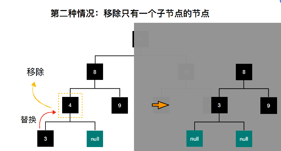 删除只有一个子节点的节点