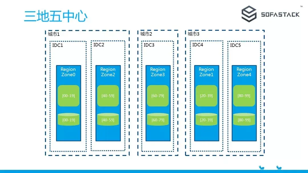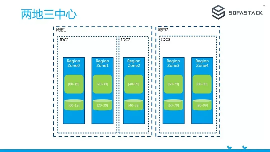 从两地三中心到容灾能力更强大的三地五中心,我们只需要先进行第三个城市的机房建设,然后将部分 RegionZone 部署到第三个城市,最后再完成数据迁移和引流即可。