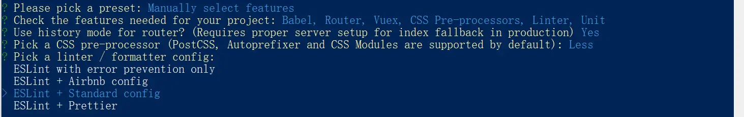2.2、选择ESLint的代码规范,这里选择使用 Standard 代码规范