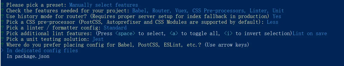 2.5、选择 Babel, PostCSS, ESLint, 等配置文件的存放位置,这里我选择单独保存在各自的配置文件中