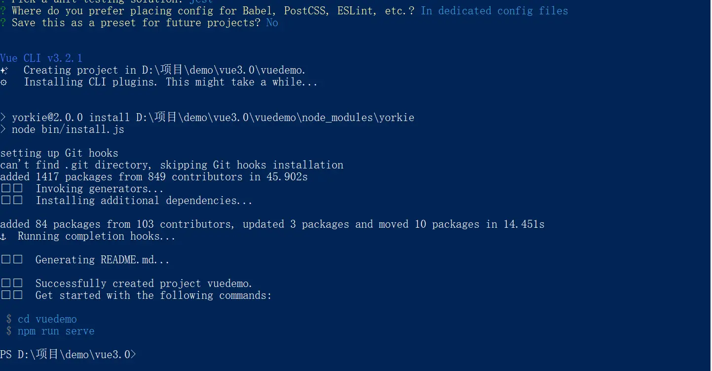 2.7、配置完成后等待脚手架完成初始化生成目录文件