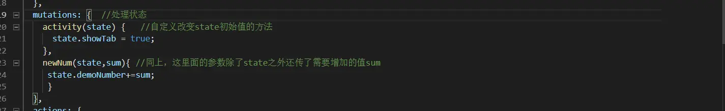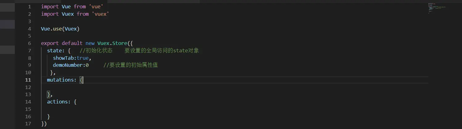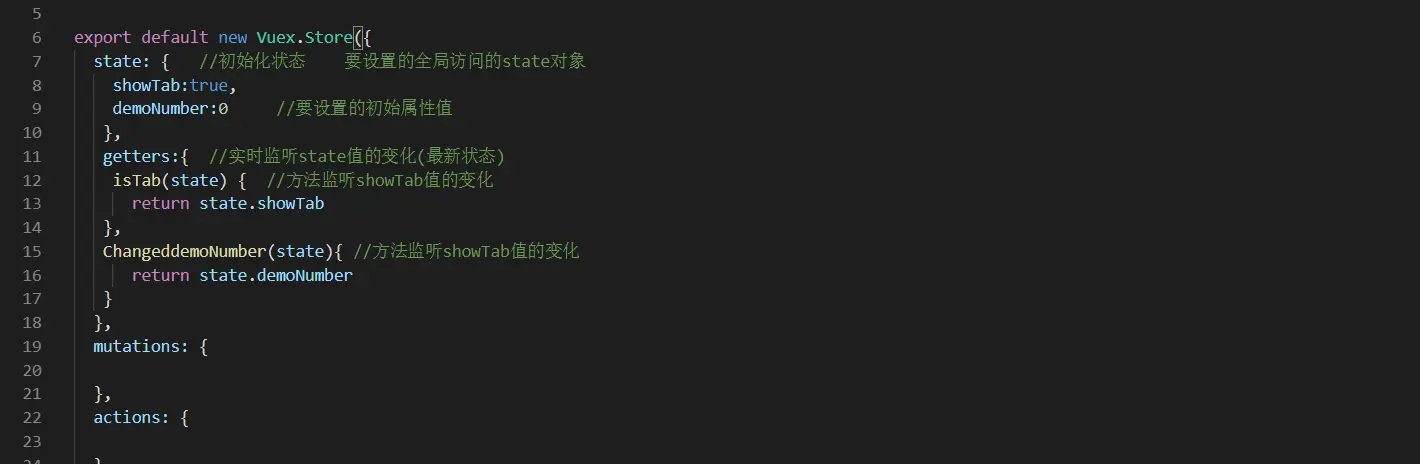 这里设置过以后我们可以用this.$store.state.showTab或this.$store.state.demoNumber在任何一个组件里面获取showTab和demoNumber定义的值了