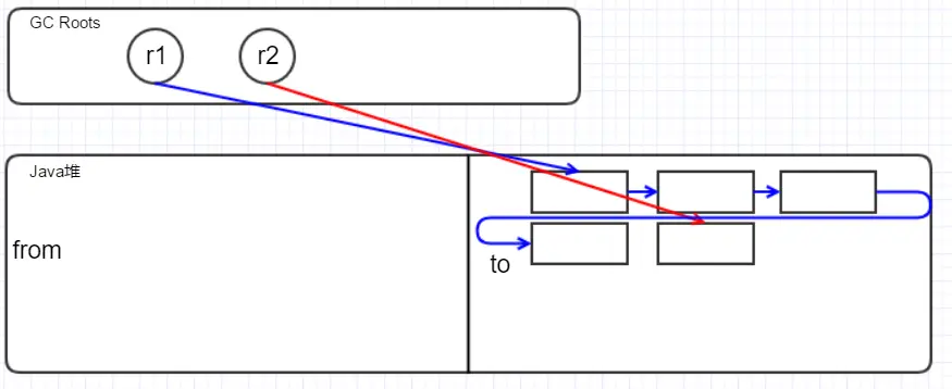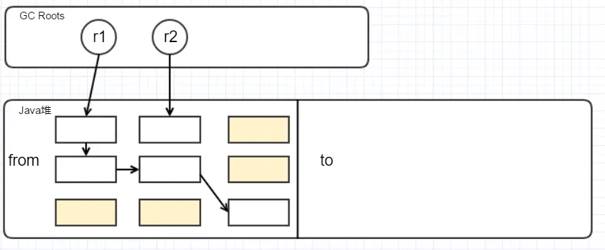 我们姑且将这两块内存区域称为from区和to区。