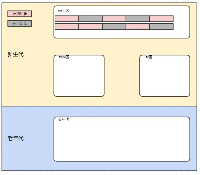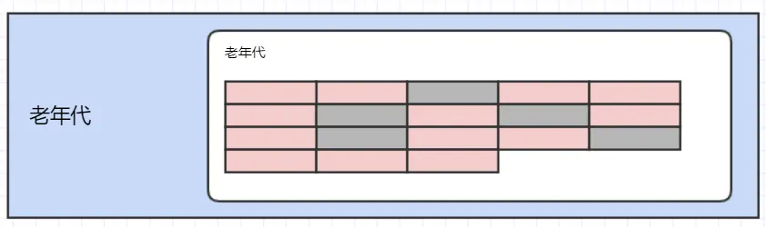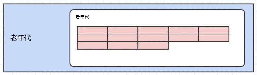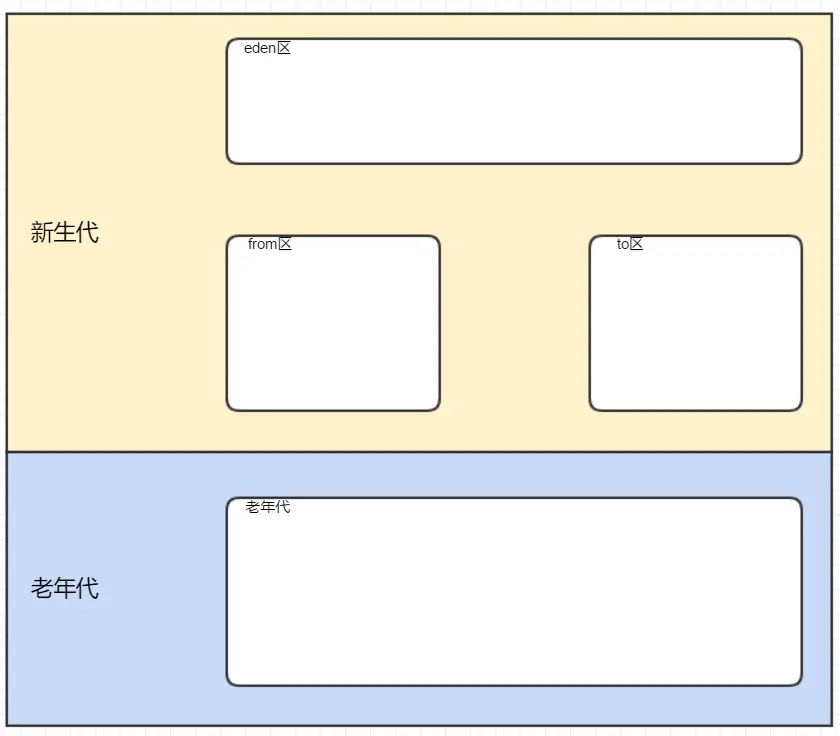 新生代分为eden区、from区、to区,老年代是一整块内存空间,如下所示: