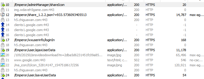 当你的fiddler像这样可以成功抓取https的数据包的时候我们就可以开始下一步了。下一步我们直接开始抓取小游戏的数据包