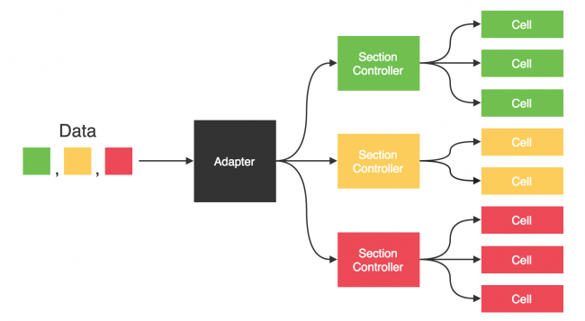 IGListKit是由Instagram团队构建的数据驱动的UICollectionView框架。 使用此框架,您可以提供要在UICollectionView中显示的对象数组。 对于每种类型的对象,适配器adapter都会创建一个称为节控制器section controller的东西,它具有创建单元格的所有细节。