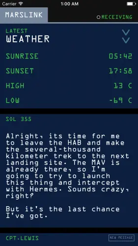 你的宇航员需要能够获得当前的天气,以便在沙尘暴等障碍物周围航行。 JPL构建了另一个显示当前天气的模块。 那里有很多信息,所以他们要求天气只在点击时显示。