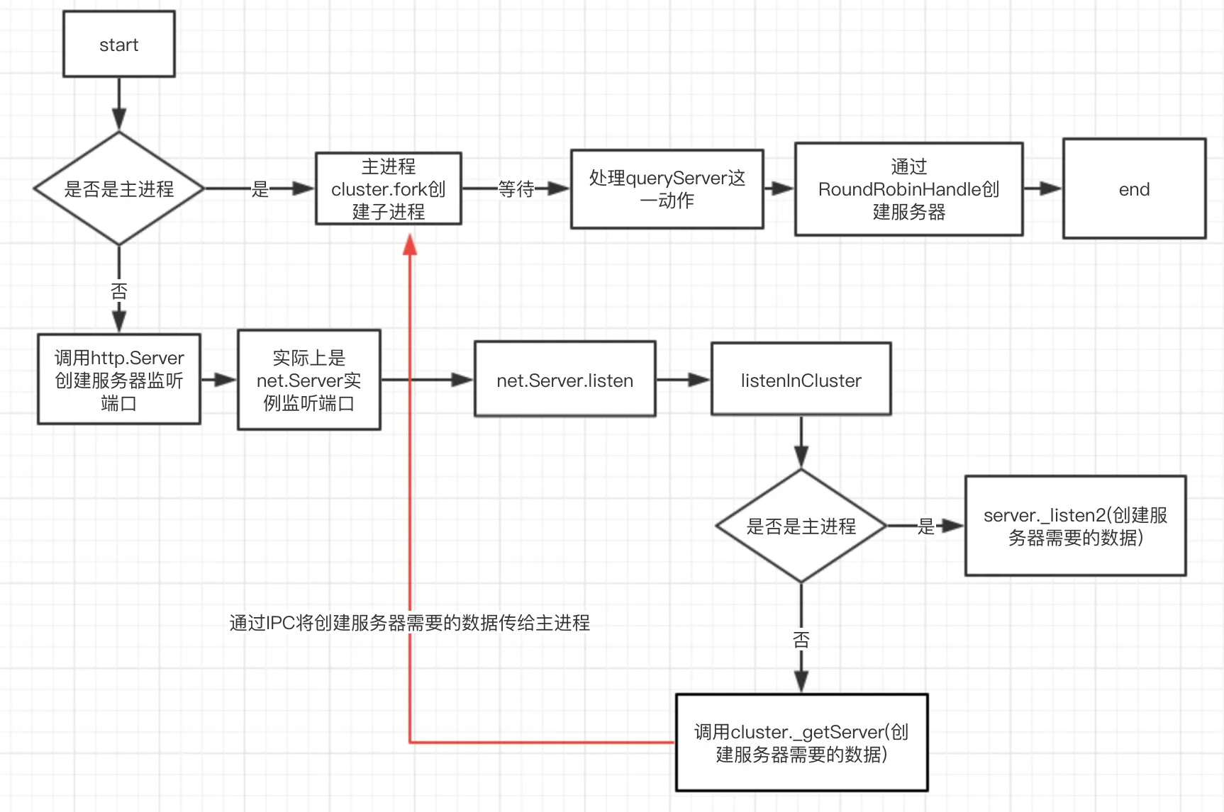 总的来说就是: 在Server.prototype.listen函数中,在成功进入条件语句后所有的情况都执行了listenInCluster函数后返回