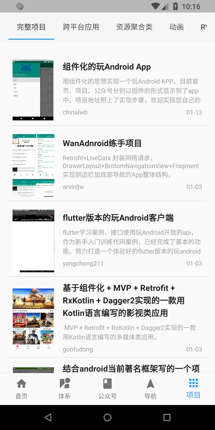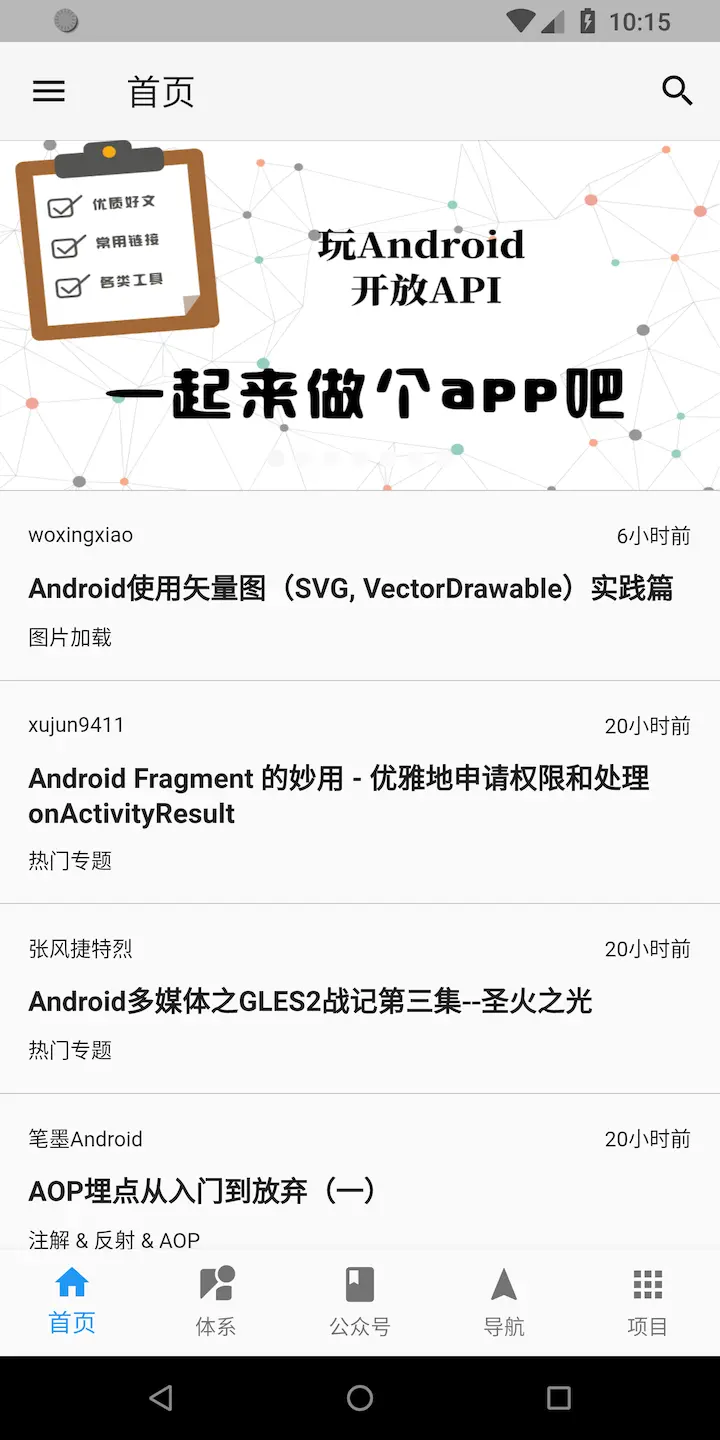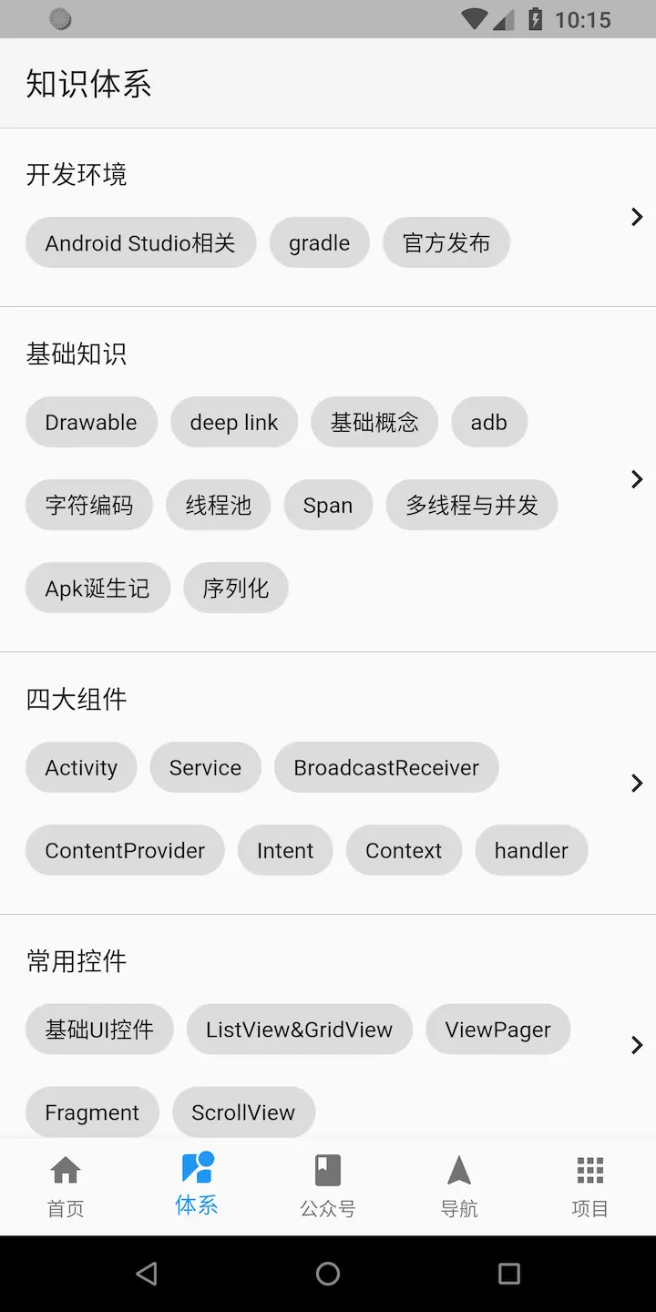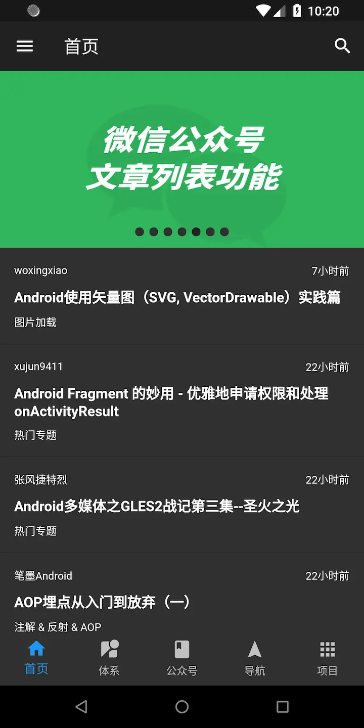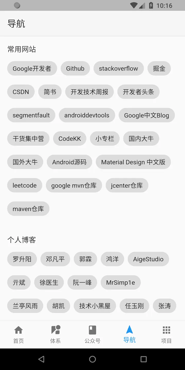 - 完成首页、知识体系、公众号、导航、项目、搜索等各个页面。