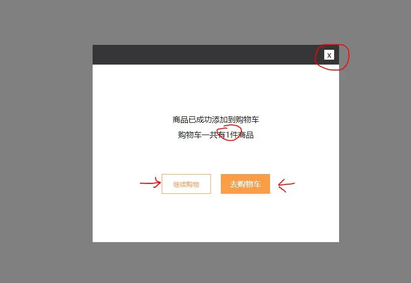 4.点击继续购物按钮,弹窗消失,蒙版消失