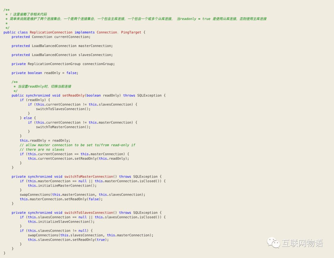 com.mysql.jdbc.ReplicationConnection在mysql-connector-java 1.5.38版本之前(ReplicationConnection源码)的是public class ReplicationConnection implements Connection, PingTarget