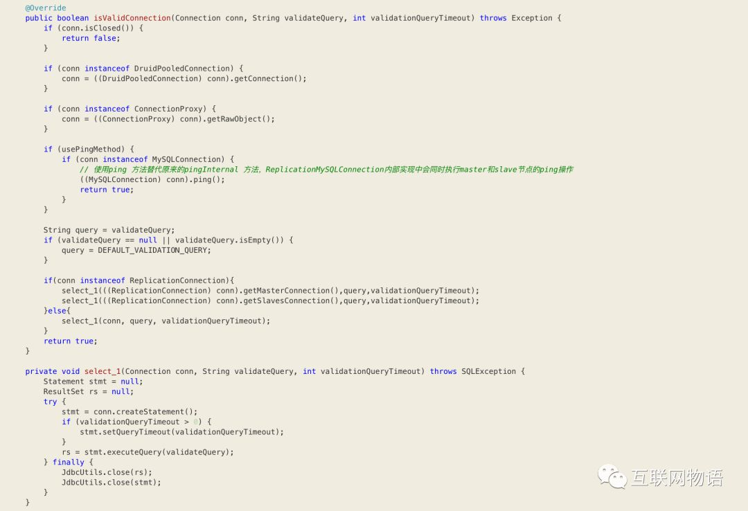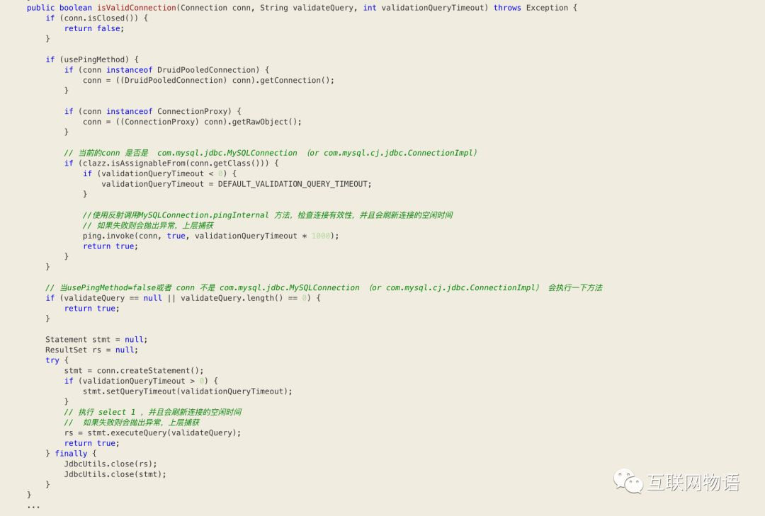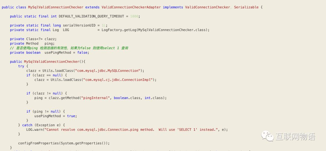 所以这里无论usePingMethod设置的值是什么,MySqlValidConnectionChecker都是执行SELECT 1 操作. 下面我们来具体看一下执行过程