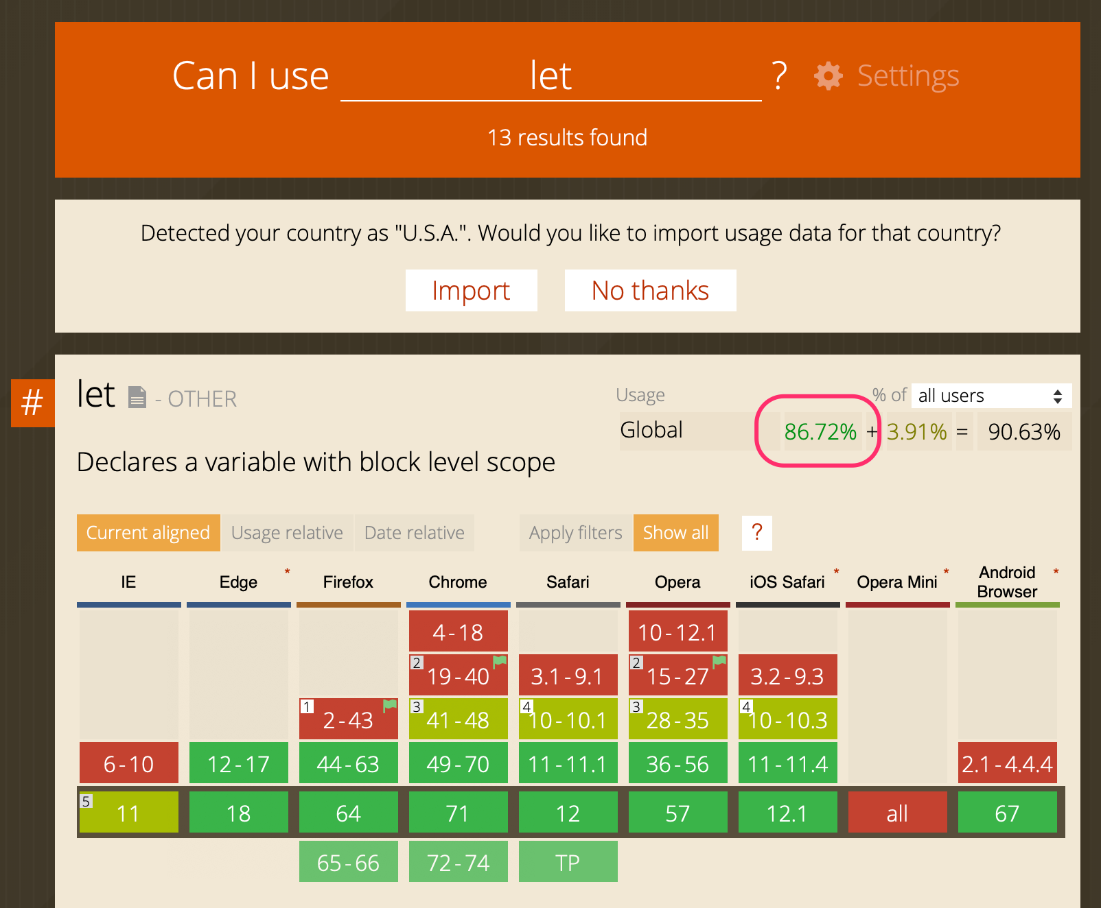 目前 86% 左右的浏览器都原生支持 let 和 const。