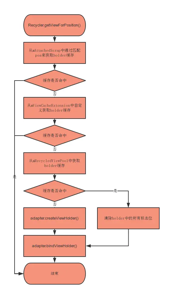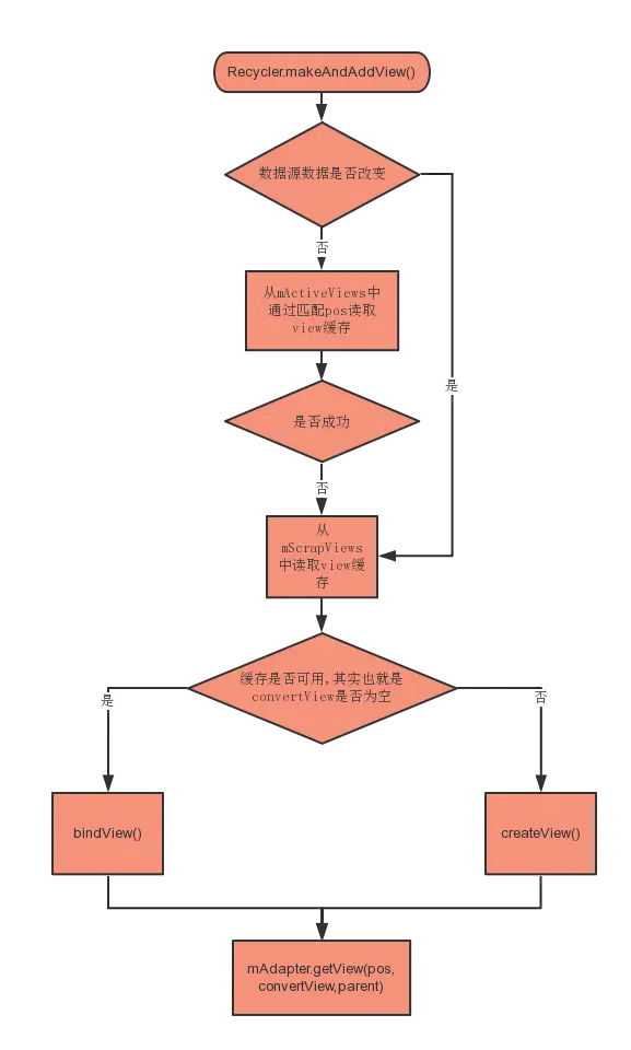 - 减少bind方法的调用频次。当视图滚动,缓存命中的情况下,ListView会将缓存中UI绑定的数据清空并重新初始化,而RecyclerView将缓存细分为两种,一种是mAttachedScrap,另一种是RecyclerViewPool。首先匹配mAttachedScrap,当mAttachedScrap中存在时直接使用其UI以及UI绑定的数据,不用重新初始化。这种通过增加少量内存开销从而减少bind方法的调用的方式,可以进一步提供视图的加载和显示效率。此外,RecyclerView还提供了局部刷新的方式来进一步减少了bind方法的调用频次,从而进一步优化了性能。
