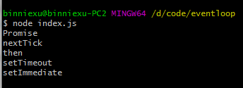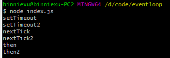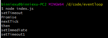 这个就是跟浏览器不同了,浏览器是执行完一个任务之后,先执行所有微任务,然后再执行下一个宏任务。