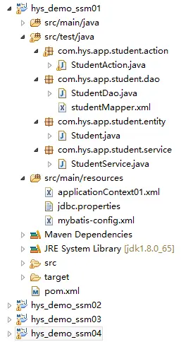 注:重复的文件在下面的例子中不在贴出来,在测试类中注意替换applicationContext01.xml文件名