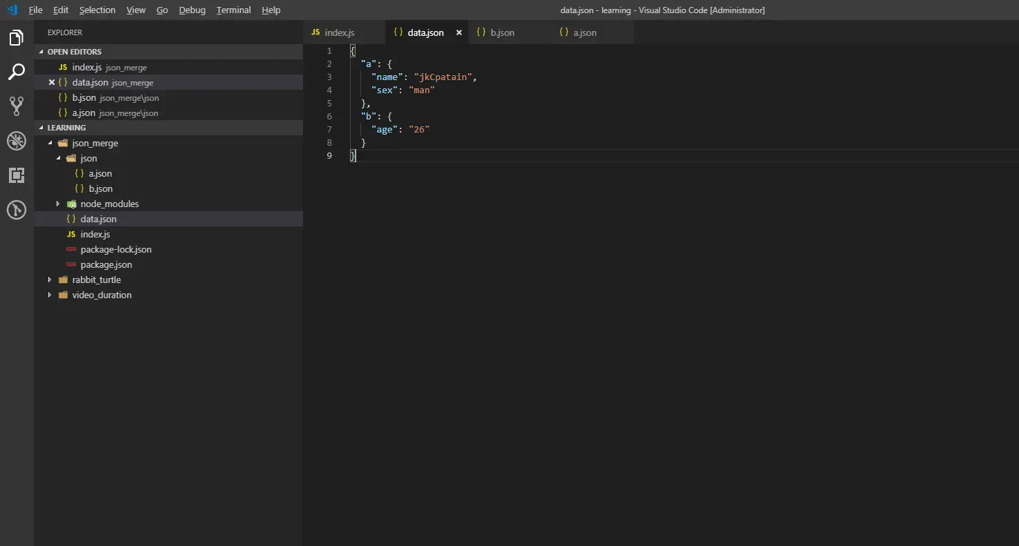 新建一个工作目录,进入到 工作目录后 npm init -y, 然后在目录下新建一个名字为 json 的文件夹,放几个json文件进去。