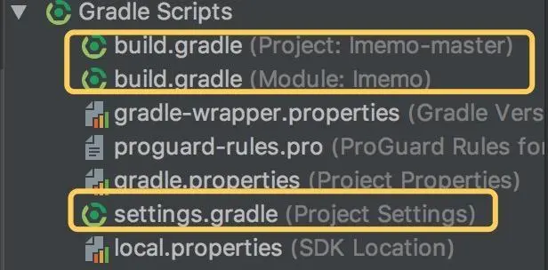 一个Android Studio项目中有三个Gradle相关文件:
