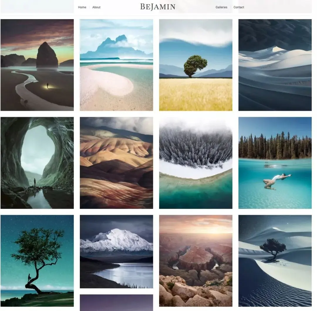 我们来大致的看一下Benjamin Everett的作品主页:https://www.bejamin.gallery 。不用一张一张的仔细观看,大致的感受一下即可。