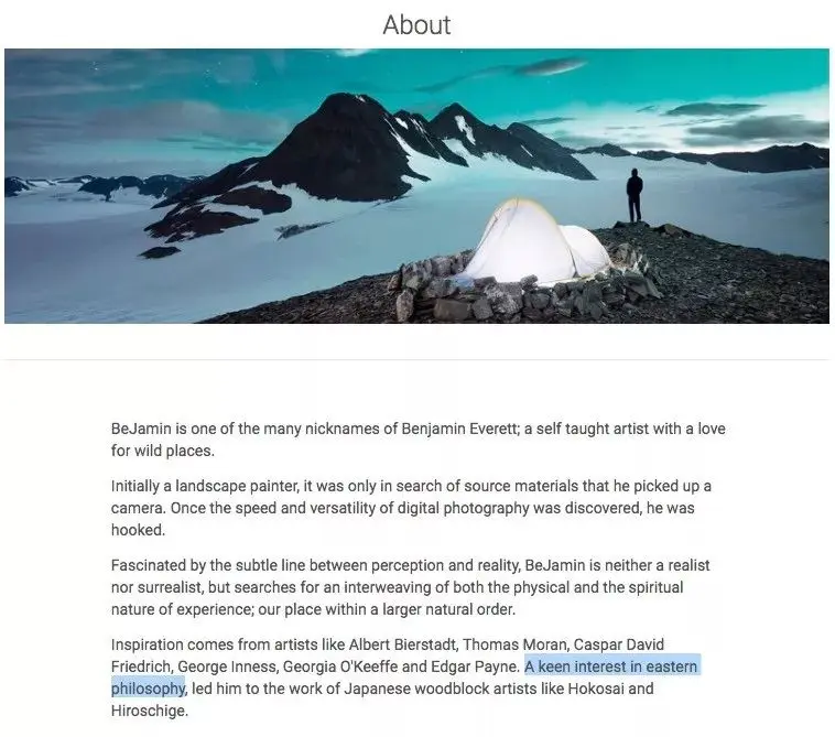 我们再阅读一下艺术家自述,也就是它网站上的“About”页面: