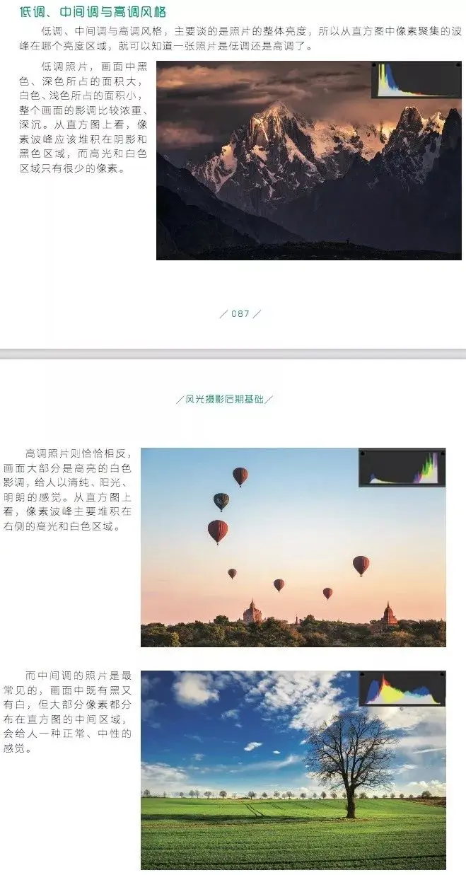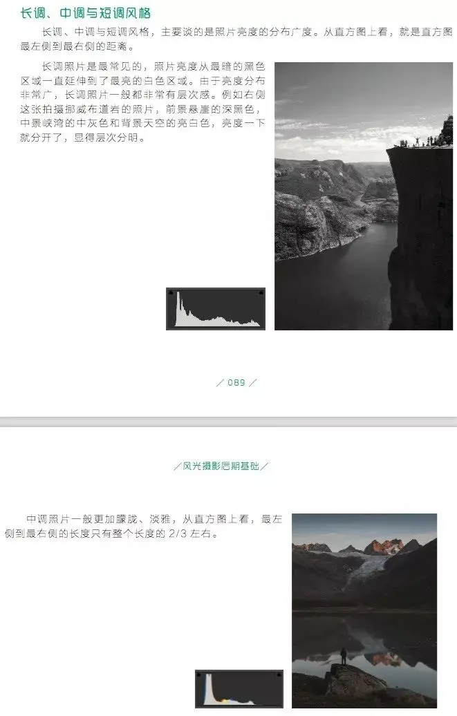 Benjamin的影调以没有纯黑和纯白的长调为主,高中低调都有,但中调偏多,整体对比度偏低,局部细节突出。如果不懂什么是高中低、长中短调,建议阅读《风光摄影后期基础》中的阐述: