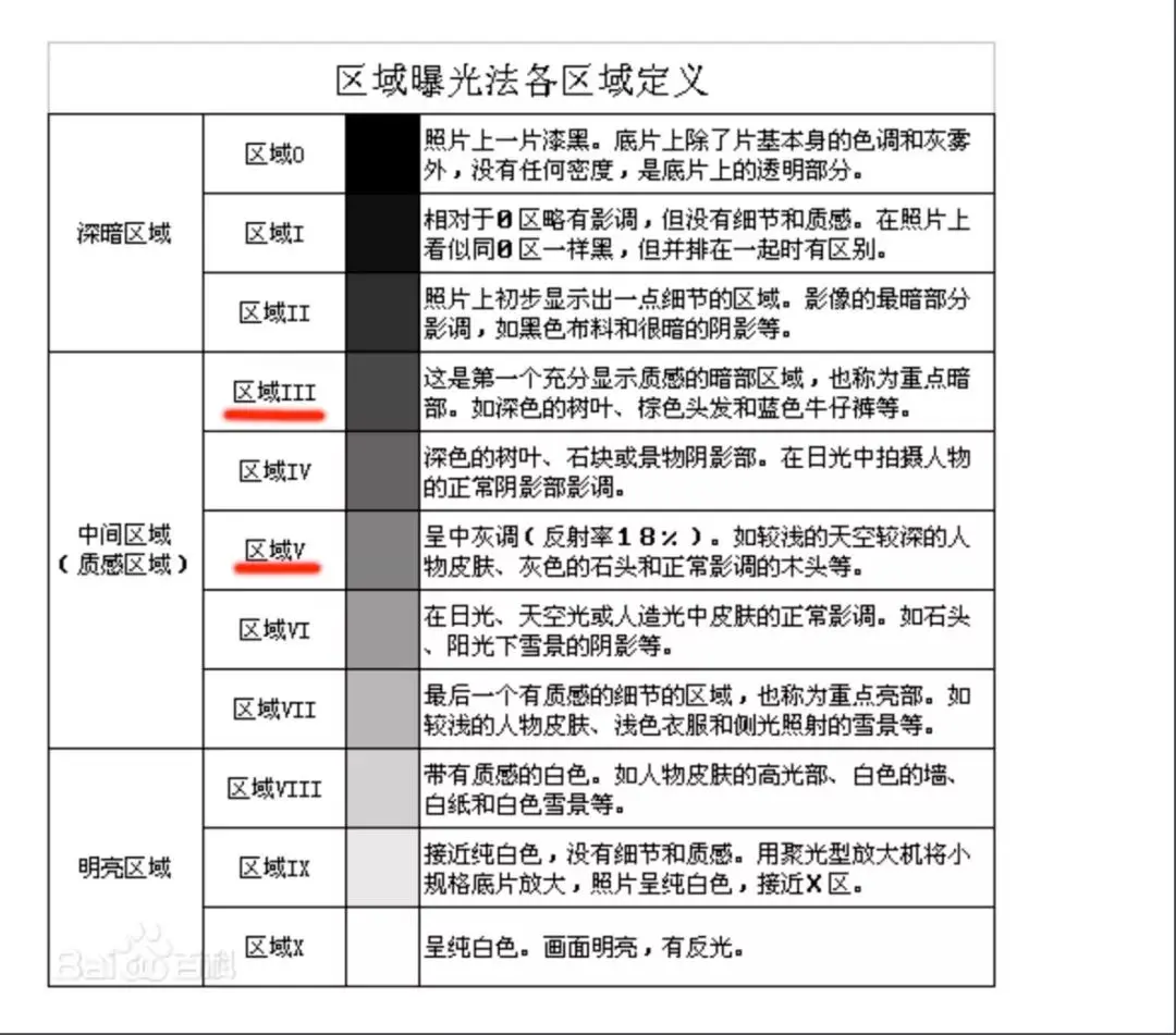 注意没有纯黑和纯白这句话,也就是他主要还是用的亚当斯区域曝光法中的2-8区: