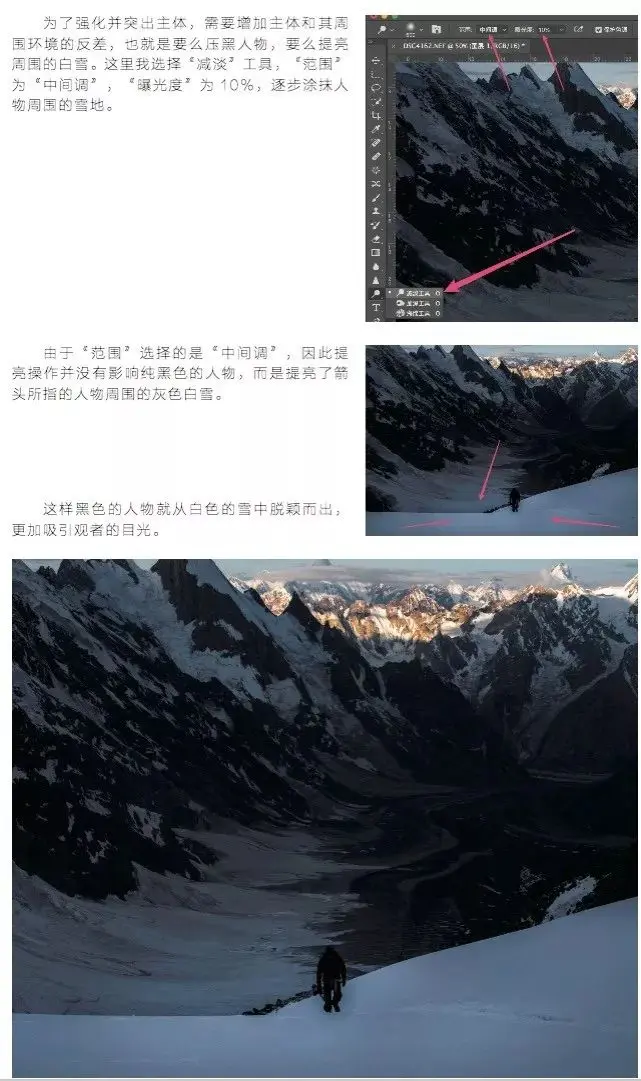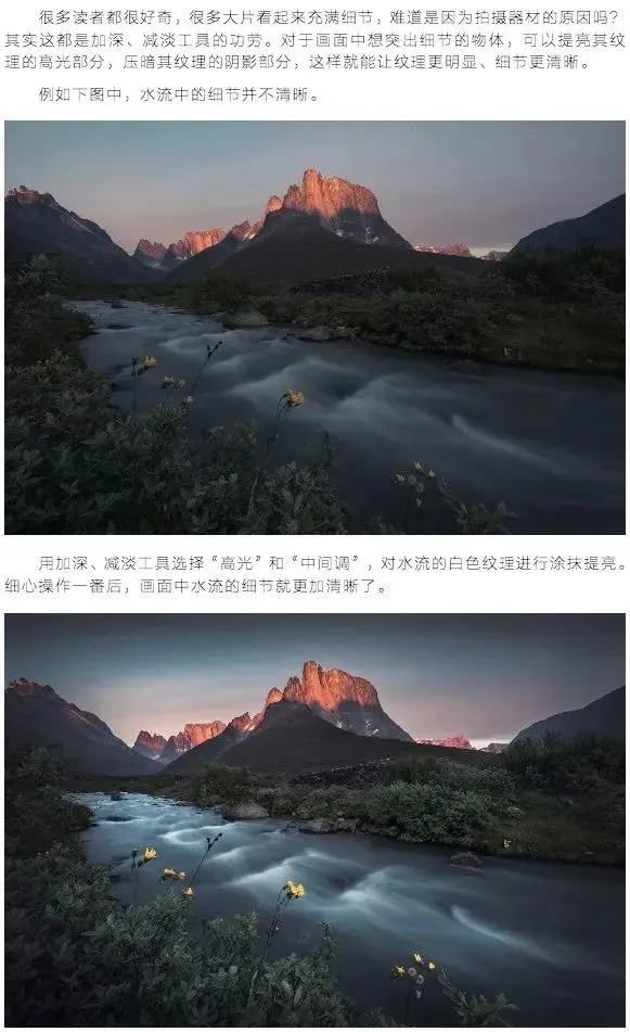 再看一下Benjamin那些细节感强的照片,石头纹理清晰、远山层层突出,都是加深减淡工具慢慢刻画的啊(也有可能是用曲线结合选区蒙版,亮度蒙版结合中灰叠加图层等等其他技术刻画的。但具体的技术不重要,效果最重要)